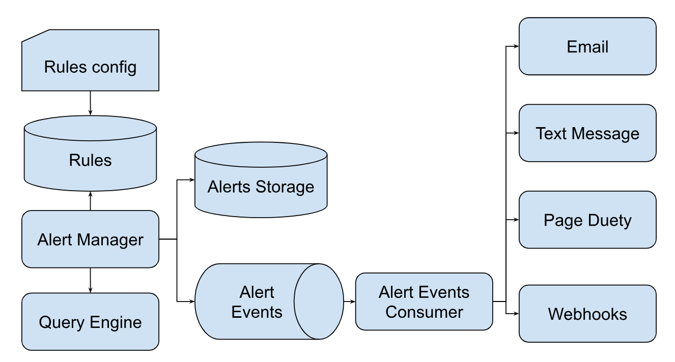 - 경고 관리자(Alert Manager): 규칙을 주기적으로 실행하며 이상이 감지되면 이벤트를 큐(Queue)에 게시해 고객에게 알립니다.