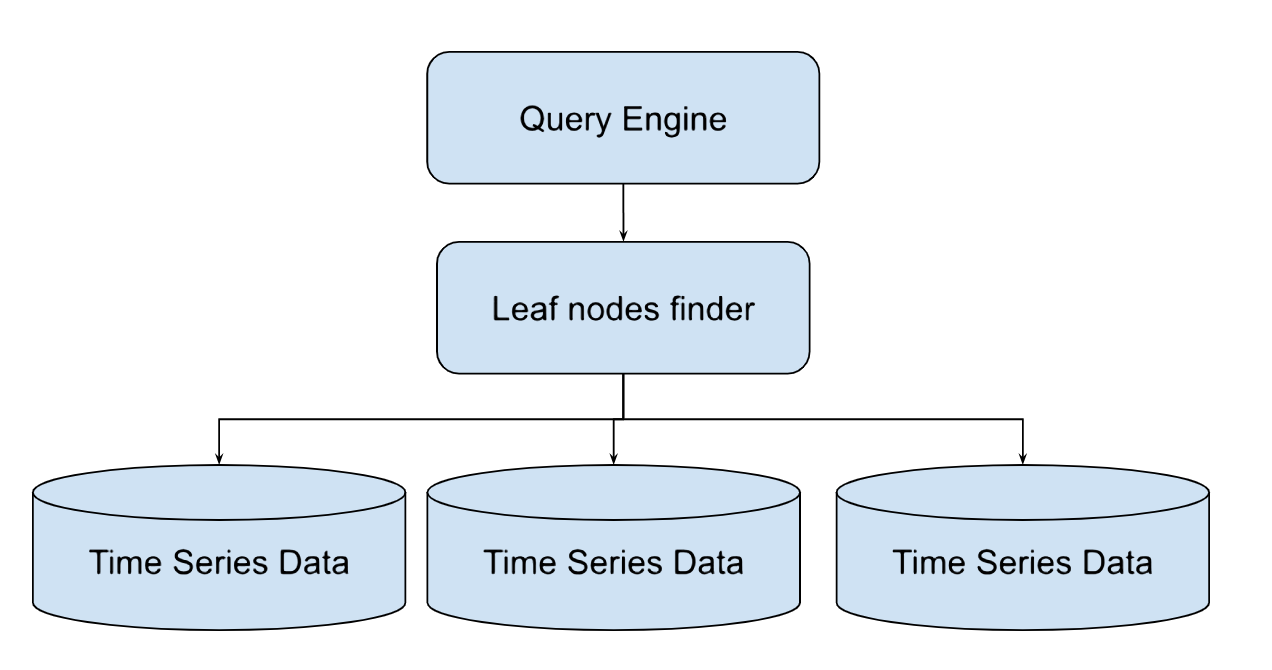 메트릭 데이터를 쿼리하기 위해 쿼리 엔진을 구축해야 합니다. 쿼리 엔진은 시계열 데이터베이스를 읽고 경고 또는 시각화에 필요한 데이터를 반환합니다. 데이터는 여러 노드와 존에 걸쳐 분산 저장되므로, 각 쿼리는 리프 노드 탐색기(leaf nodes finder)를 통해 리프 노드에서 실행됩니다.